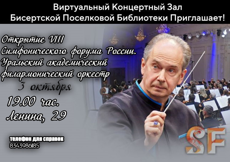 Приглашаем жителей и гостей Бисертского муниципального округа 3 октября в 19:00 в читальный зал библиотеки, где состоится Открытие VIII Симфонического форума России.