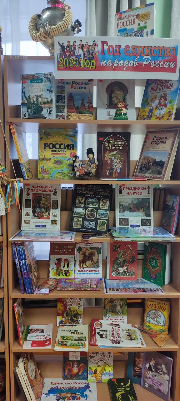 Бисертская поселковая библиотека приглашает вас посетить тематическую выставку «Год единства народов России», посвящённую важному общественному событию — 2026 году, объявленному Указом Президента РФ Годом единства народов России.