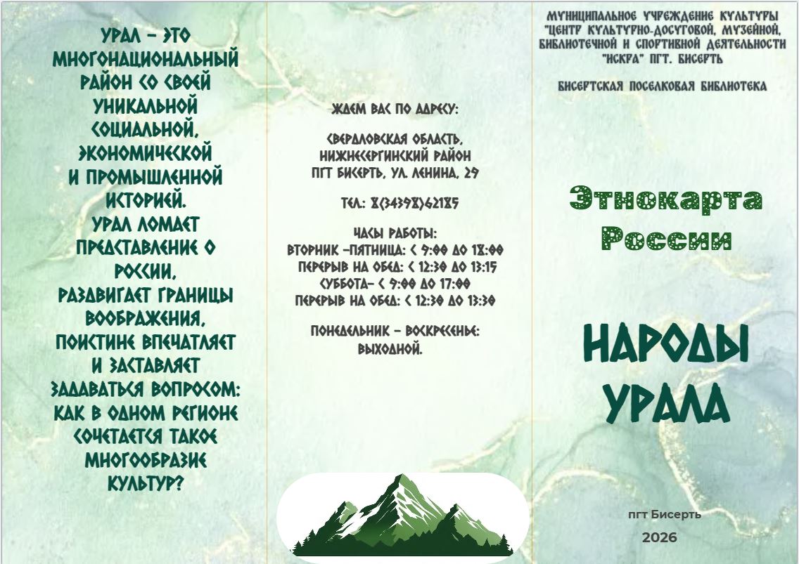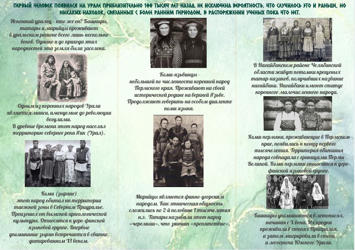 Предлагаем вашему вниманию буклет «Народы Урала», из которого вы узнаете о некоторых коренных народах, населяющих Урал.