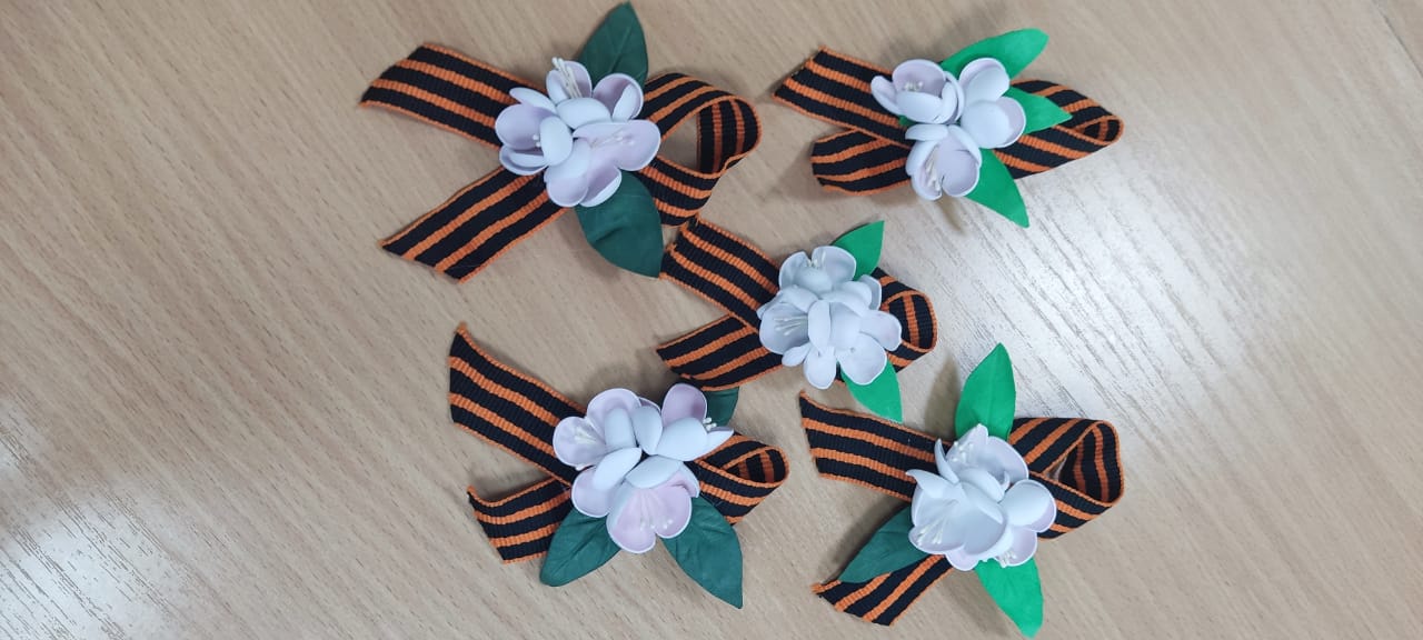 При содействии педагога дополнительного образования МКОУ ДО Дом детского творчества Р. В. Андрюковой и члена Бисертского отделения «Российский Красный Крест» Е. В. Капитоновой был организован и проведен мастер-класс «Изготовление георгиевской ленточки с элементами из фоамирана».